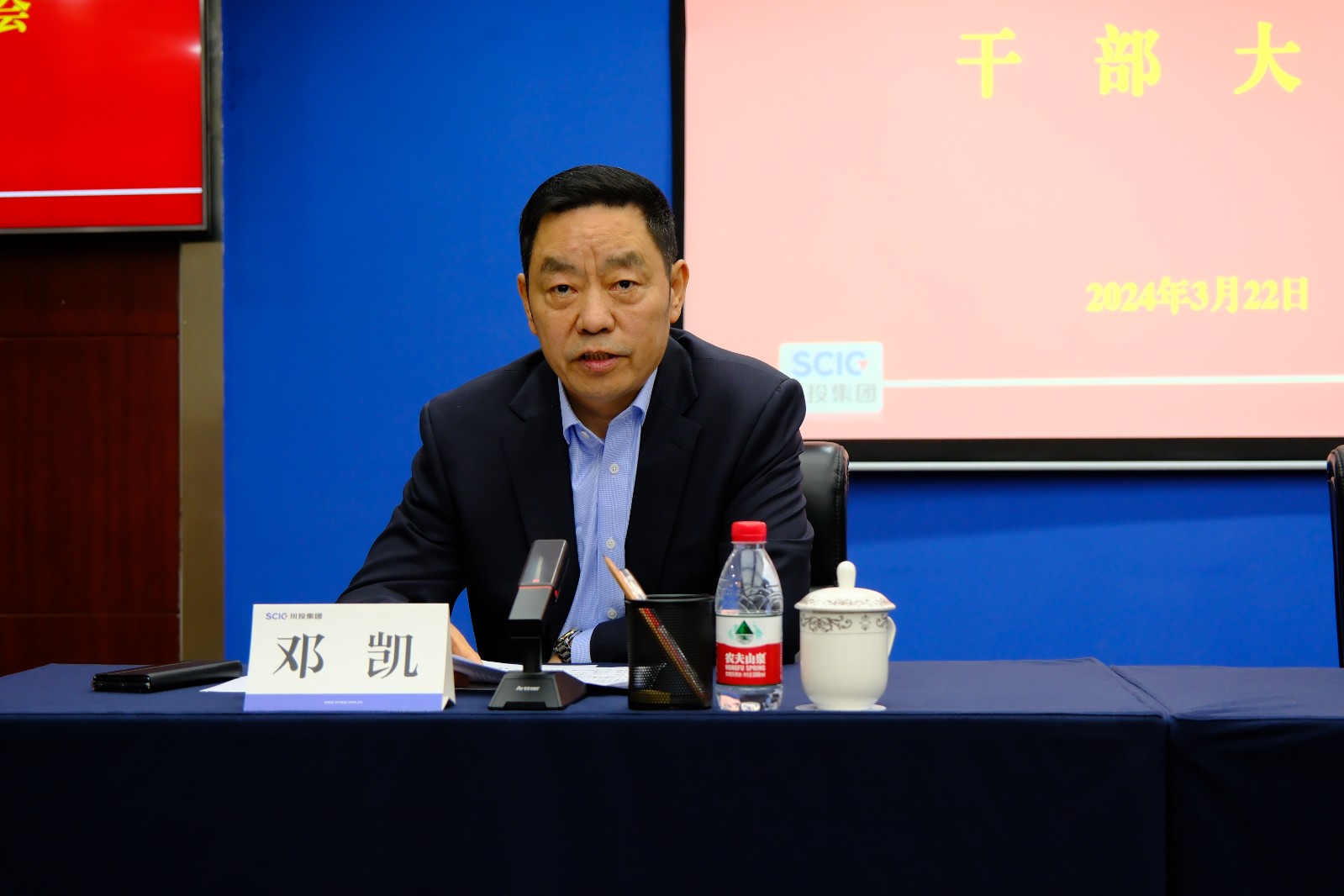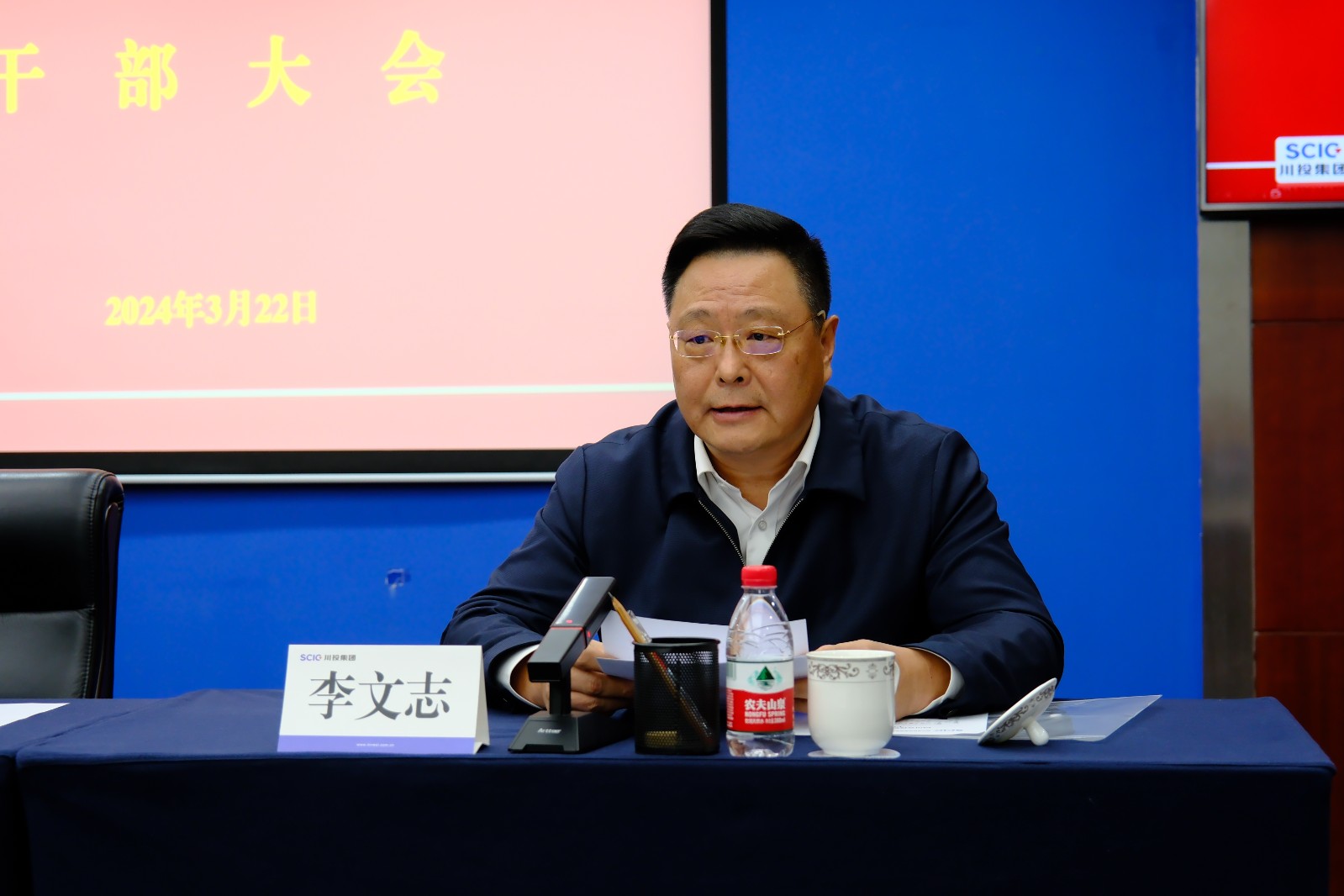 3月22日上午,川投集团召开干部大会。党委书记、董事长吴晓曦出席会议并讲话,党委副书记、副董事长、总经理李文志宣读省委、省政府关于肖长青、朱莉同志的任职通知,党委副书记、董事邓凯主持会议,在家的集团公司领导班子成员出席会议。
