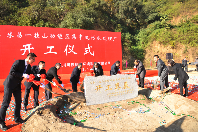 2018年12月26日上午,攀枝花市米易县,阳光明媚、温暖如春,由川投水务集团和中船重工环境集团共同投资建设的米易一枝山功能区污水处理项目举行开工奠基仪式。川投集团董事、副总经理李洪,川投水务集团党委书记、董事长梁有国,川投水务集团党委副书记、总经理邓锐,川投水务集团总会计师祝瑗,中船重工环境集团总工程师付显利,米易县委副书记曾科,米易白马工业园区管理委员会主任杨吉斌等出席开工仪式。川投船重环境科技有限公司总经理马铭伟主持开工奠基仪式。