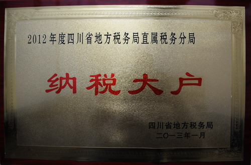 近日,四川省地方税务局对2012年度纳税额达到2,000万元以上的98户企业(单位)给予了通报表彰,并颁发了“2012年度纳税大户”牌匾,川投集团公司位列其中,这是集团公司连续第九年获得此项荣誉。