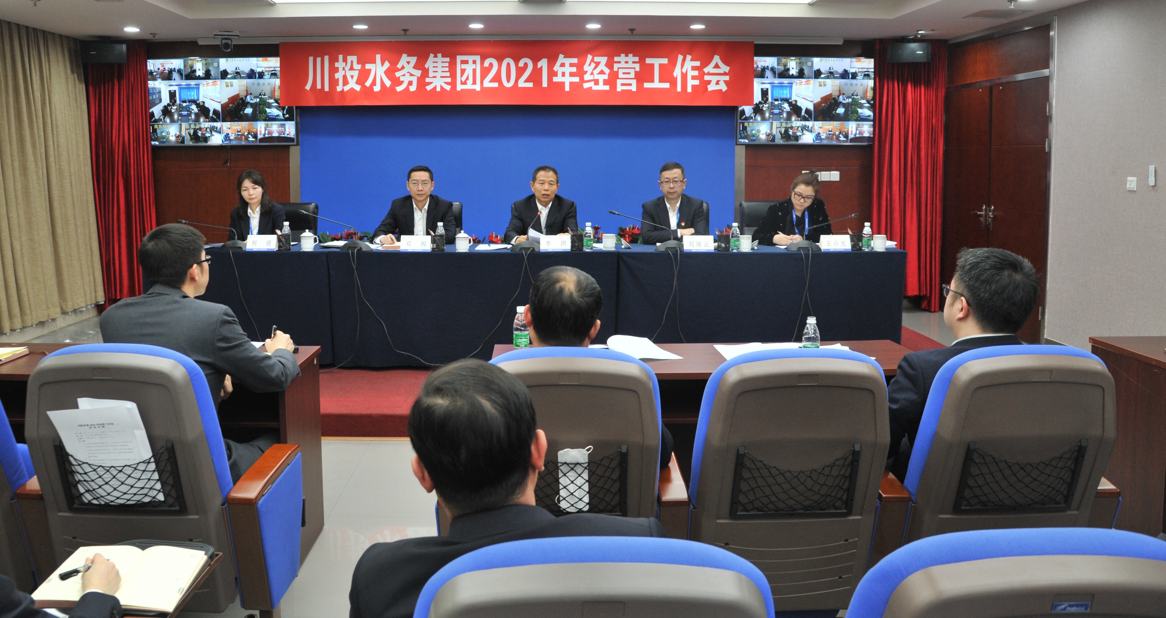 川投水务集团党委书记、董事长刘凌云,党委副书记、总经理邓锐等领导班子成员、中层副职及以上管理人员参加会议,各所属公司领导班子按照疫情防控要求通过视频会议形式参会。
