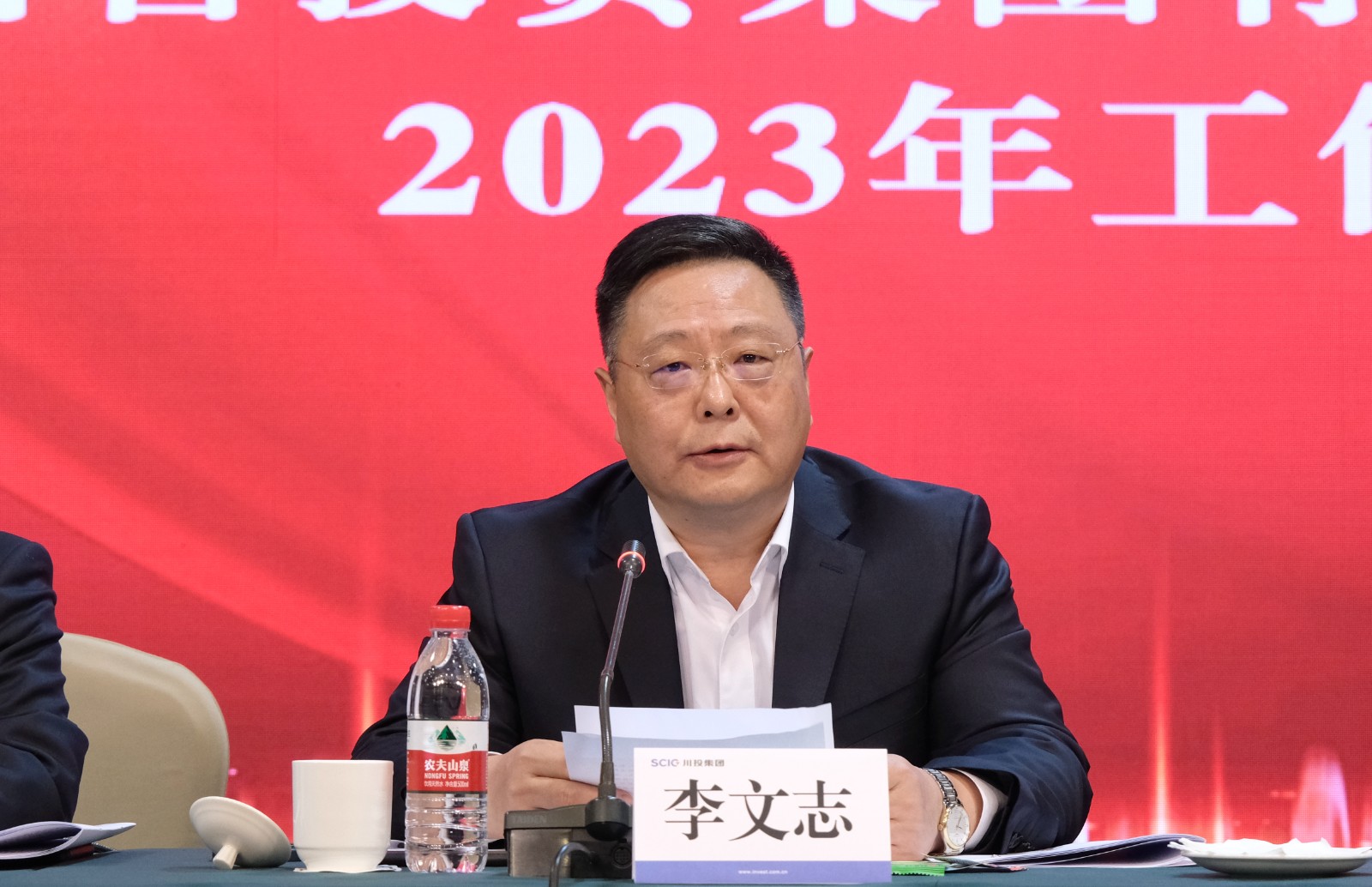 李文志以《保持定力、乘势而上,在千亿川投新征程上奋力实现新突破》为题总结回顾2022年工作,并对2023年工作任务做安排部署。