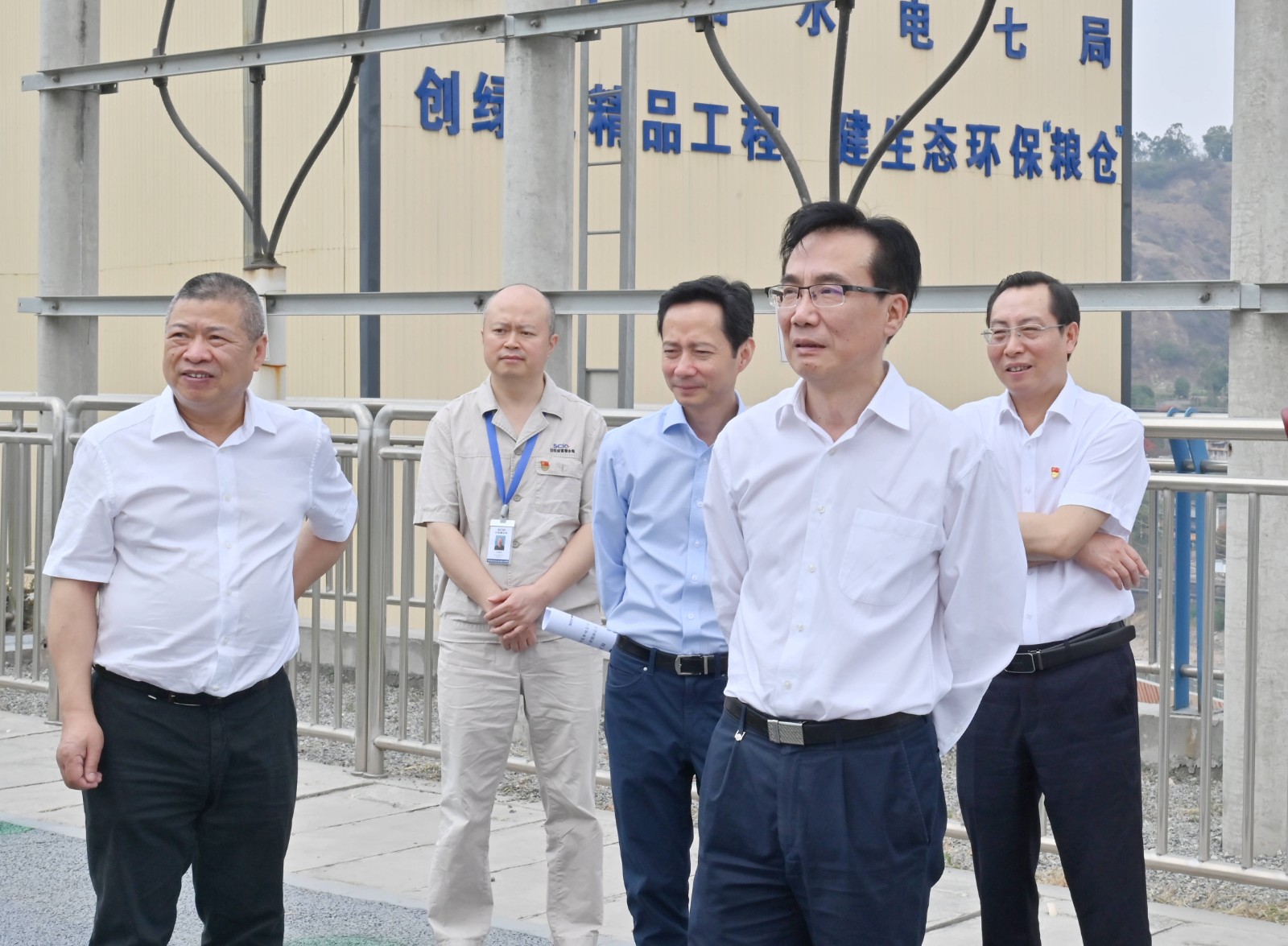 在银江水电站,吴晓曦一行先后来到施工变电站观景平台、上游围堰,了解了项目整体规划、目前施工进度等情况,听取了攀水电党总支“七色阳光大党建”品牌介绍。他指出,川投能源要继续以党建引领工程建设和公司高质量发展,提高项目建设的思想认识和施工标准,全力以赴推进工程建设,把握住新能源开发与建设的重大机遇;强化应急管理,确保安全形势可控、在控;抓好党风廉政建设,认真履行一岗双责,既要实干担当,又要廉洁自律。