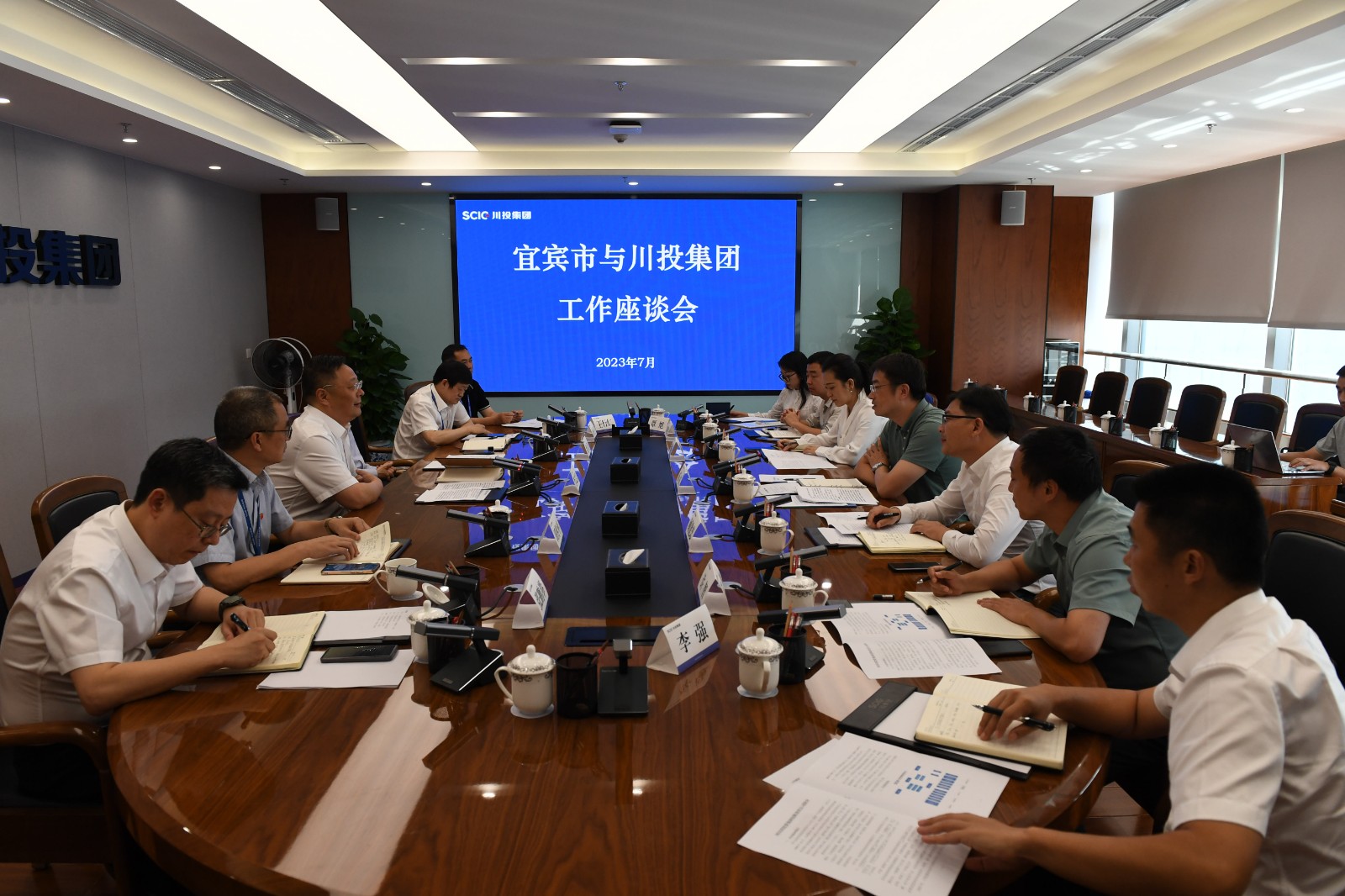7月14日,集团公司党委副书记、副董事长、总经理李文志与率队到访川投集团的宜宾市副市长薛庆开展工作座谈。
