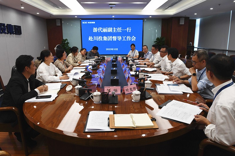 10月27日,省国资委党委委员、副主任游代丽一行赴川投集团督导生产经营工作。川投集团党委书记、董事长吴晓曦,副总经理张昊,财务总监黄劲参加。