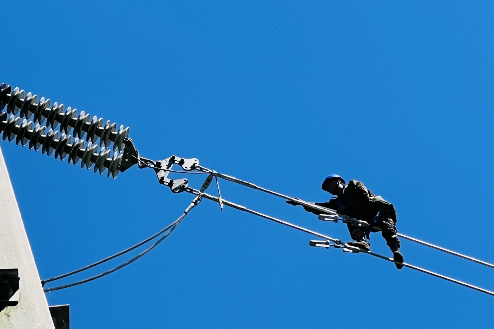 “220kV输电线路“9·5”地震灾后重建工程是田湾河公司灾后重建的第一个重大项目,包括18基铁塔的重建及线路架设,工作量巨大,涉及专业工种繁多,且施工作业位置多处于高山峻岭之上,实施及管理难度极大。”相关同志解释。