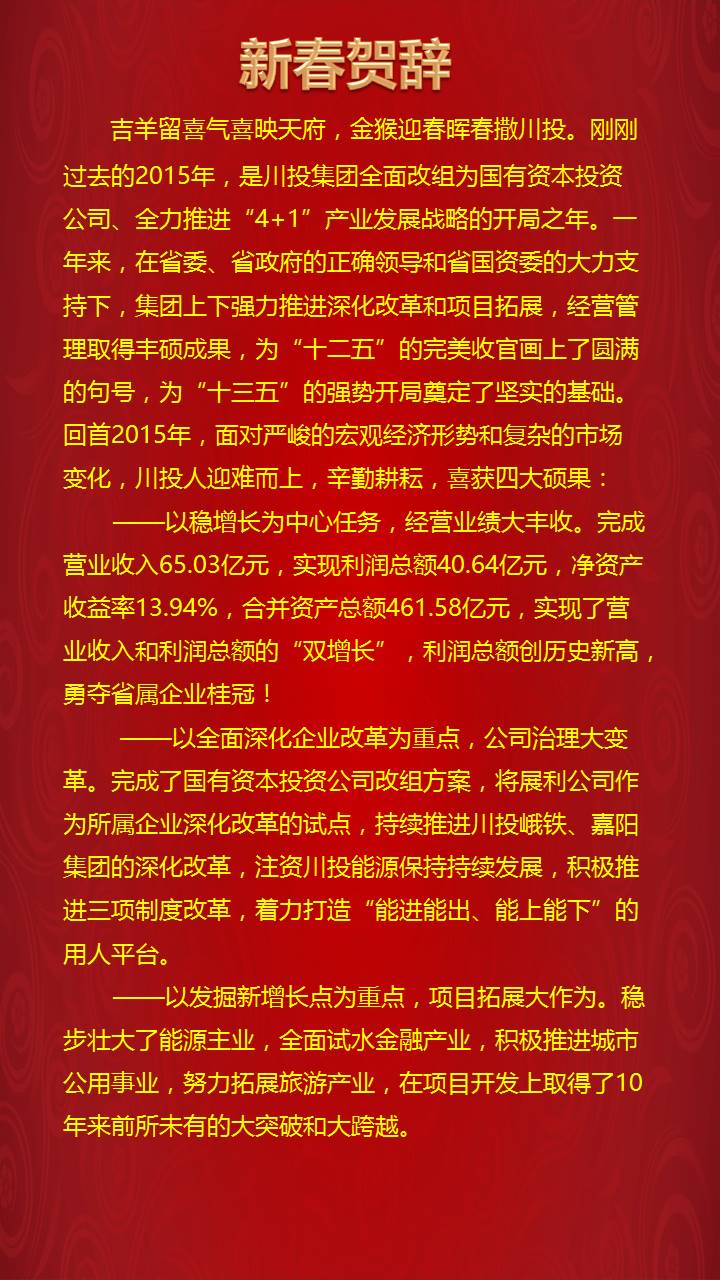 拼搏在线官方网站(简称川投集团)是四川省人民政府授权的国有资产经营主体、重点建设项目的融资主体和投资主体之一,省国资委管理的国有独资公司。了解更多>