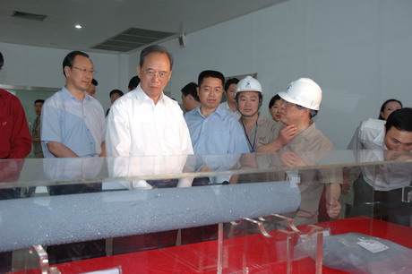 培炎副总理饶有兴致地参观了项目中央控制室,亲切慰问了战斗在一线的广大职工,在听取川投集团公司总经理郭勇和新光硅业公司总经理陈绍章介绍新光硅业承建的年产1000吨多晶硅高技术产业化项目建设情况、工艺流程、发展规划等相关情况汇报后,培炎副总理强调,对这样的高技术产业化项目要给予支持,希望公司认真落实科学发展观,为我国的多晶硅产业做出更大的贡献。