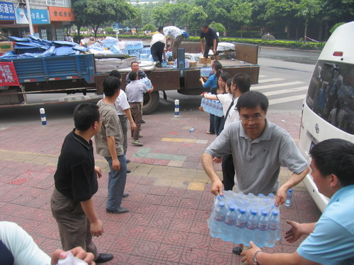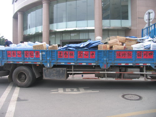2008年5月16日12点,满载着川投国网公司员工和各施工单位对灾区人民深情的两卡车救灾物资,送达川投集团抗震救灾指挥部。此次捐赠是抗震救灾指挥部收到的品种最齐、总量最大的一笔,灾难中凝聚力量,我们的心永远和灾民在一起,应急物资调度中心将根据需要即时发往北川、绵竹、汶川卧龙、江油等重灾单位。(川投集团抗震救灾领导小组办公室整理)