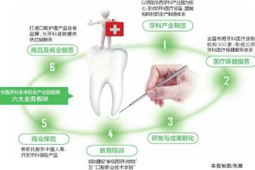 华西牙科看准了牙科保险板块的商机,将依托股东中国人寿保险公司,开发全生命周期不同阶段、不同侧重点的牙科保险产品,探索牙科医疗服务和牙科商业保险间的利益共享机制。