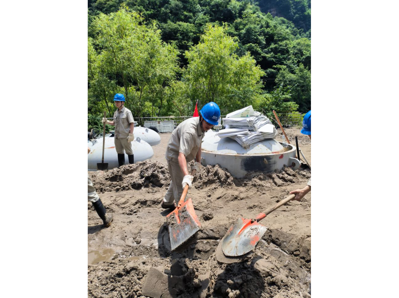 “战疫保电”的同时,田湾河公司还经历了一次抗险救灾考验。8月底,一场大雨裹挟着2万余方泥石流冲毁了田湾河生产现场通往仁宗海电站的道路与主要线路。为确保安全发电,基地所有部门悉数出动,“白 黑”连续奋战抢险自救。泥泞的滑坡体里,党员冲锋在前排查隐患;倾倒的电线杆旁,青年志愿者逐一排查受损情况;被泥水淹没的库房里,党员突击队全力清淤;厂房里、大坝旁,身处交通孤岛的党员职工们沉着冷静坚持工作。