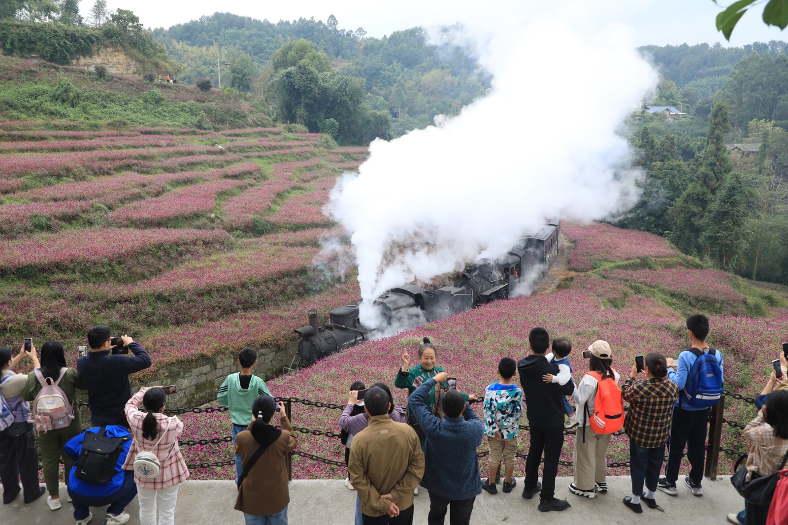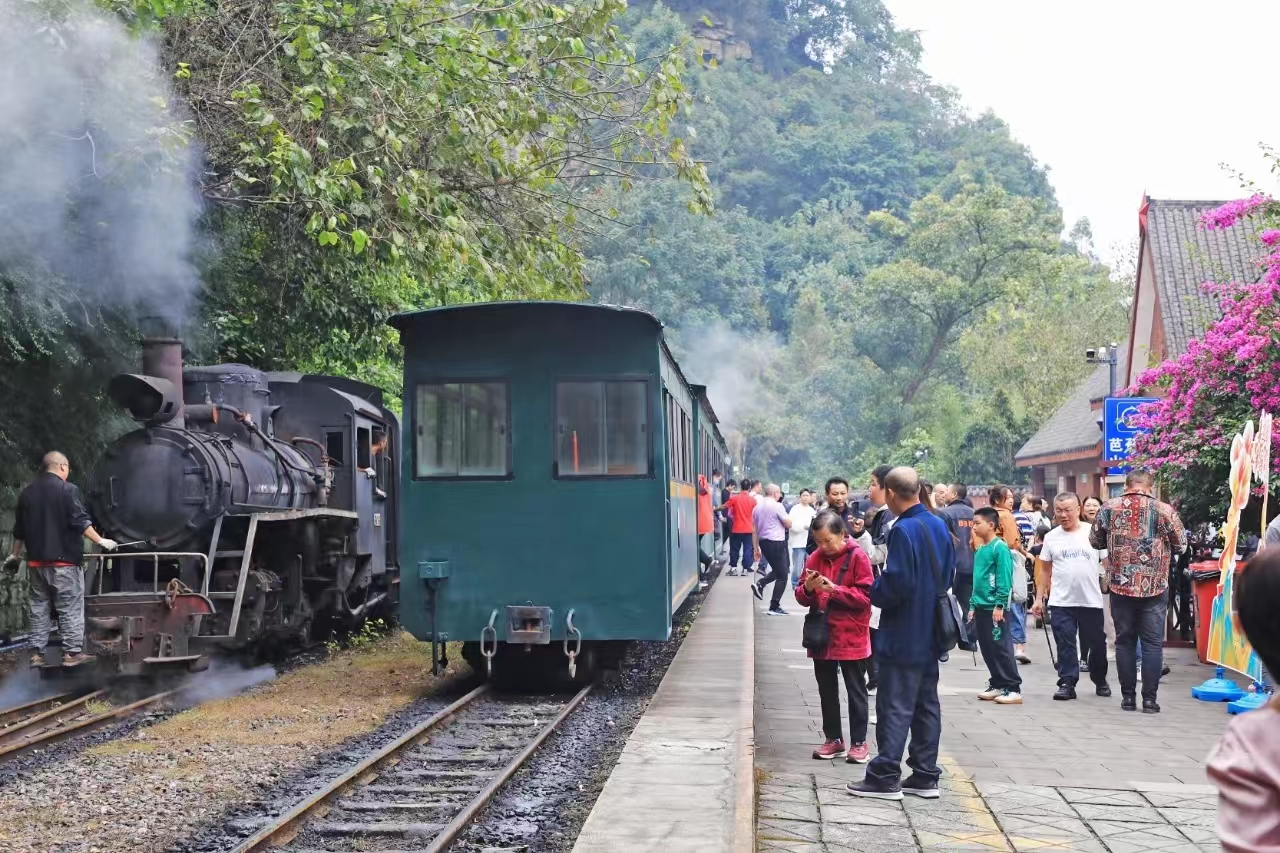 嘉阳小火车成为了游客们的首选体验项目,18万株紫色的千日红花儿正在段家湾景点盛开,亮水沱景点盛开的木椿菊花与小火车蒸汽表演同样吸引了众多游客的目光,下车观光的游客们纷纷拿出相机、手机,记录下这美好的瞬间;芭蕉沟老矿区作为景区内的另一热门景点,其建筑风貌吸引了大量游客探访,这里的每一块砖石都诉说着曾经的故事;黄村井矿井体验经过升级成为矿山主题乐园,地上地下综合展示,亲子、体验、兴趣项目立体交织,新游线布局新项目上线……更是让游客们大开眼界;侏罗纪探险谷和桫椤湖也备受游客喜爱,游客们仿佛穿越时空,回到了侏罗纪时代,与“恐龙”来了一场奇妙的邂逅;而在桫椤湖,游客们乘坐游船在湖上荡漾,欣赏着湖光山色,让心灵得到了彻底的放松。