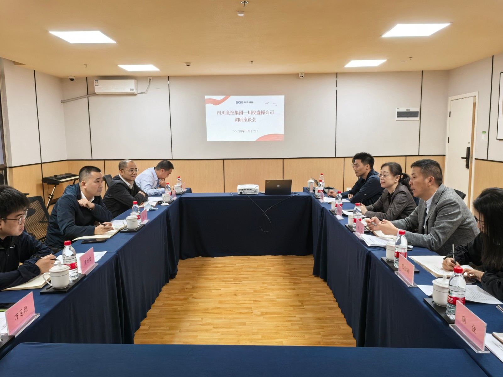 10月12日,川投盛榉公司与四川金控集团在川投舒适之家·武侯吉福院座谈交流。四川金控集团党委工作部总经理、第三专项工作组组长潘永,川投大健康副总经理杨轶舫出席会议,川投盛榉公司党支部书记、执行董事杨飞主持会议。