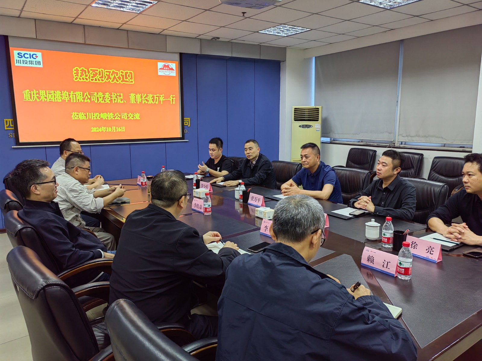 10月16日,重庆果园港埠有限公司党委书记、董事长张万平一行5人到访公司。川投峨铁公司党委书记、董事长李胜章,党委副书记、总经理陈新龙,党委委员、常务副总经理李宏,营销总监周全与来访客人进行了交流座谈。
