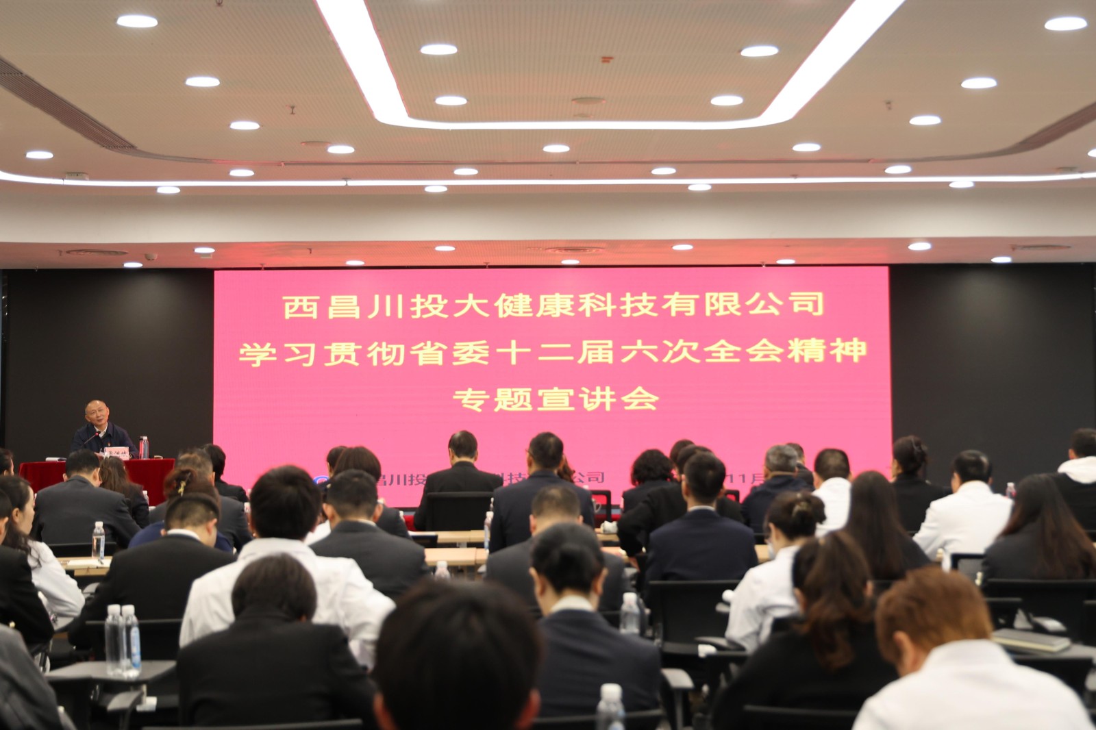 为深入贯彻落实省委十二届六次全会精神,按照川投大健康产业集团党委工作部署,11月7日,川投大健康产业集团党委书记、董事长鲁洪斌到川投西昌大健康公司作省委十二届六次全会精神宣讲。川投西昌大健康公司党委副书记、副总经理、院长金鸿主持会议。