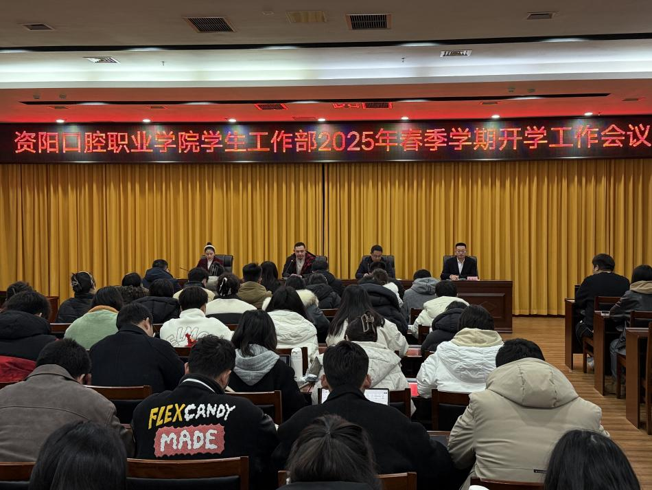 近日,资阳口腔职业学院召开春季学期学工工作会,会议围绕“强基固本、创新突破”总目标,以“目标清单化、责任精准化”为导向,系统部署年度重点学生工作。学院副院长刘洪出席会议并讲话,学生工作部全体成员参会。