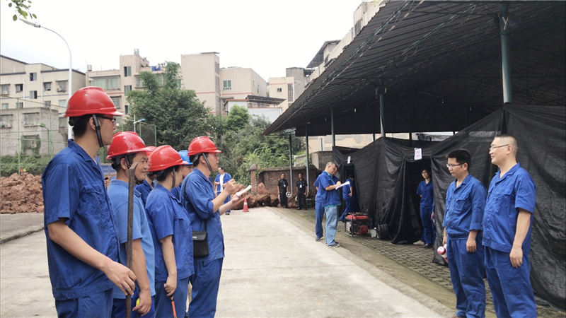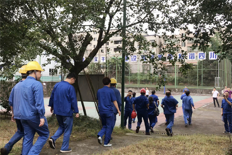 本次演练以“泸州周边发生地震灾害并波及到公司,且对公司生产和职工生活造成影响”为场景。公司值班安保人员发现地震险情后,第一时间用扩音器对生活区宿舍楼发出警示,提醒大家地震来袭,尽快避险。宿舍楼内职工听到警报后,迅速转移到安全区域避险。公司抗震指挥部随即成立,第一时间向上级主管部门报告地震灾情,并下达启动地震应急预案命令,及时搜集掌握有关情报信息;紧急避险组、安全疏散组、医疗救护组、人员搜救组、灾情调查组、后勤保障组同时成立并迅速开展行动,投入到紧张的灾情侦查、紧急救援、后勤保障等工作中去。