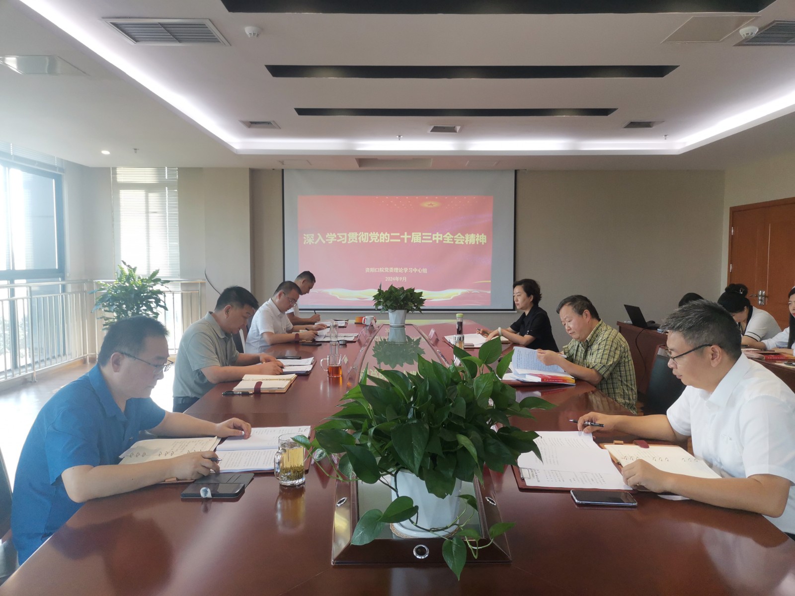 9月3日,资阳口腔职业学院党委理论学习中心组召开2024年第七次学习(扩大)会,专题学习党的二十届三中全会精神,并结合职业教育工作实际,集中研讨贯彻落实的思路举措。学院党委书记、理事长张中伟主持会议并讲话,学院领导班子成员参加。