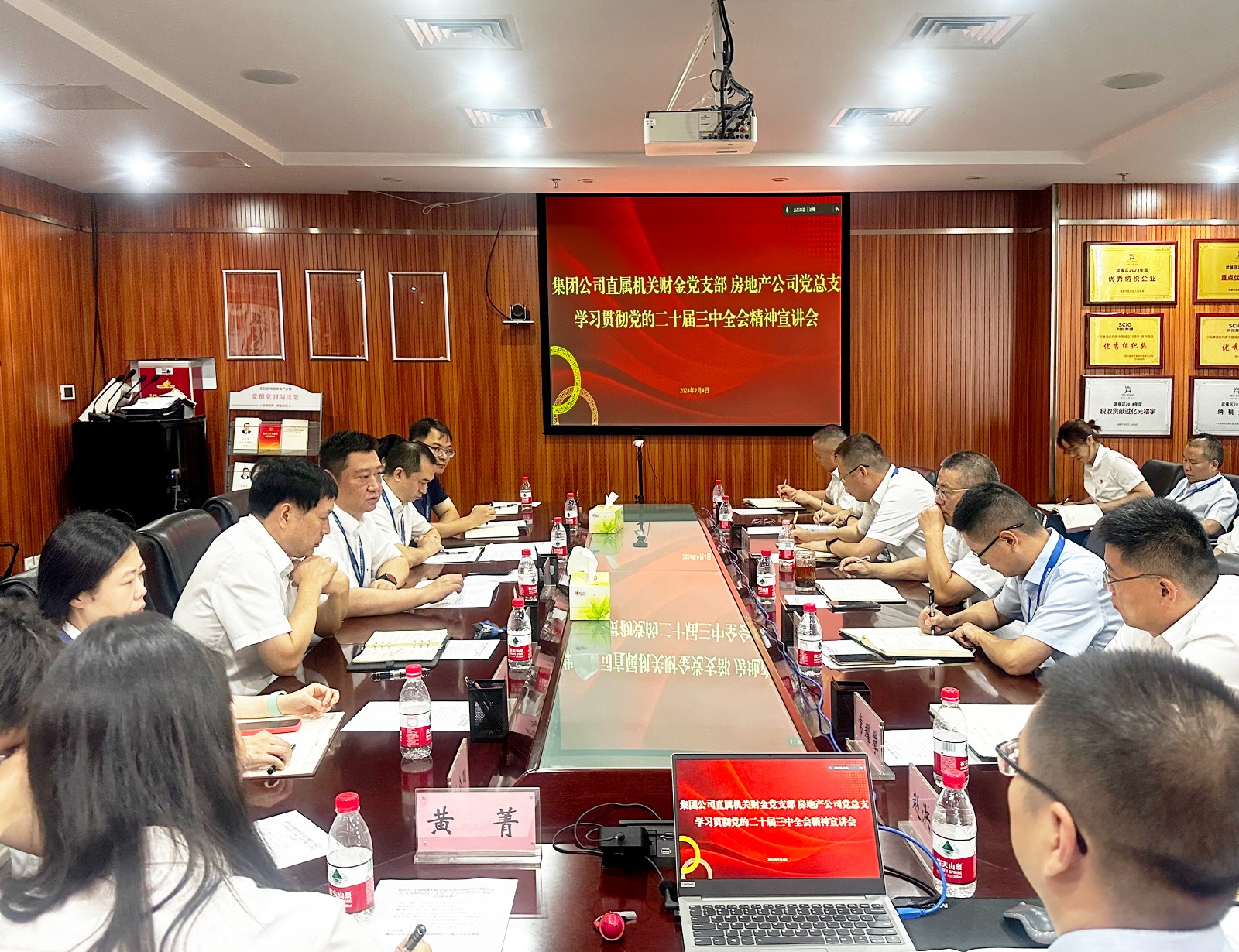 9月4日,川投集团财务总监黄劲到房地产公司宣讲党的二十届三中全会精神。房地产公司党总支书记、董事长龚帝伟主持会议。