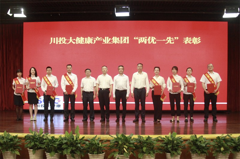 致敬身边先进,弘扬榜样力量。为深入学习贯彻习近平新时代中国特色社会主义思想,充分发挥先进典型示范引领作用,28日下午,川投大健康产业集团召开“七一”表彰大会,对先进党组织、优秀党务工作者、优秀共产党员,以及“爱党爱企 我为企业献良策”金点子征集活动中“十佳金点子”、“技能先锋”、“巾帼先锋”等表彰对象进行了表彰。随后,在鲁洪斌的领誓下,预备党员面向党旗,庄严宣誓,其他党员共同重温入党誓词。表彰大会充分营造了川投大健康产业集团崇尚先进、学习先进、争当先进、赶超先进的企业氛围,丰富了“健康+先锋”党建品牌的内涵,凝聚起了党员干部职工争先创优、担当作为的正能量。