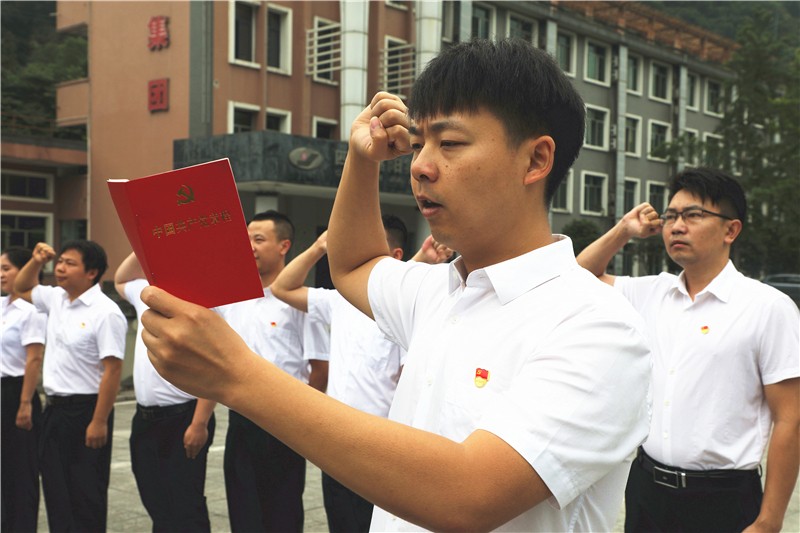 “大家一定要牢记入党的初心……”6月30日,嘉阳集团公司党委举行新党员入党宣誓仪式,来自机关和基层各单位的8名新党员仰望神圣的党旗,庄严宣誓。