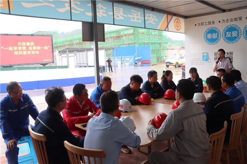 为深入学习宣传贯彻党的二十大精神,做好省委十二届三次全会精神宣传宣讲,落实主题教育“学思想、强党性、重实践、建新功”总要求,7月20日,川投集团巡回宣讲队到资阳燃气电站项目开展“一起学思想 送课到一线”巡回宣讲活动。资阳气电公司党支部书记、执行董事、总经理梁红兵出席并讲话,资阳气电和EPC总承包项目部的党员代表、员工代表参加宣讲活动。