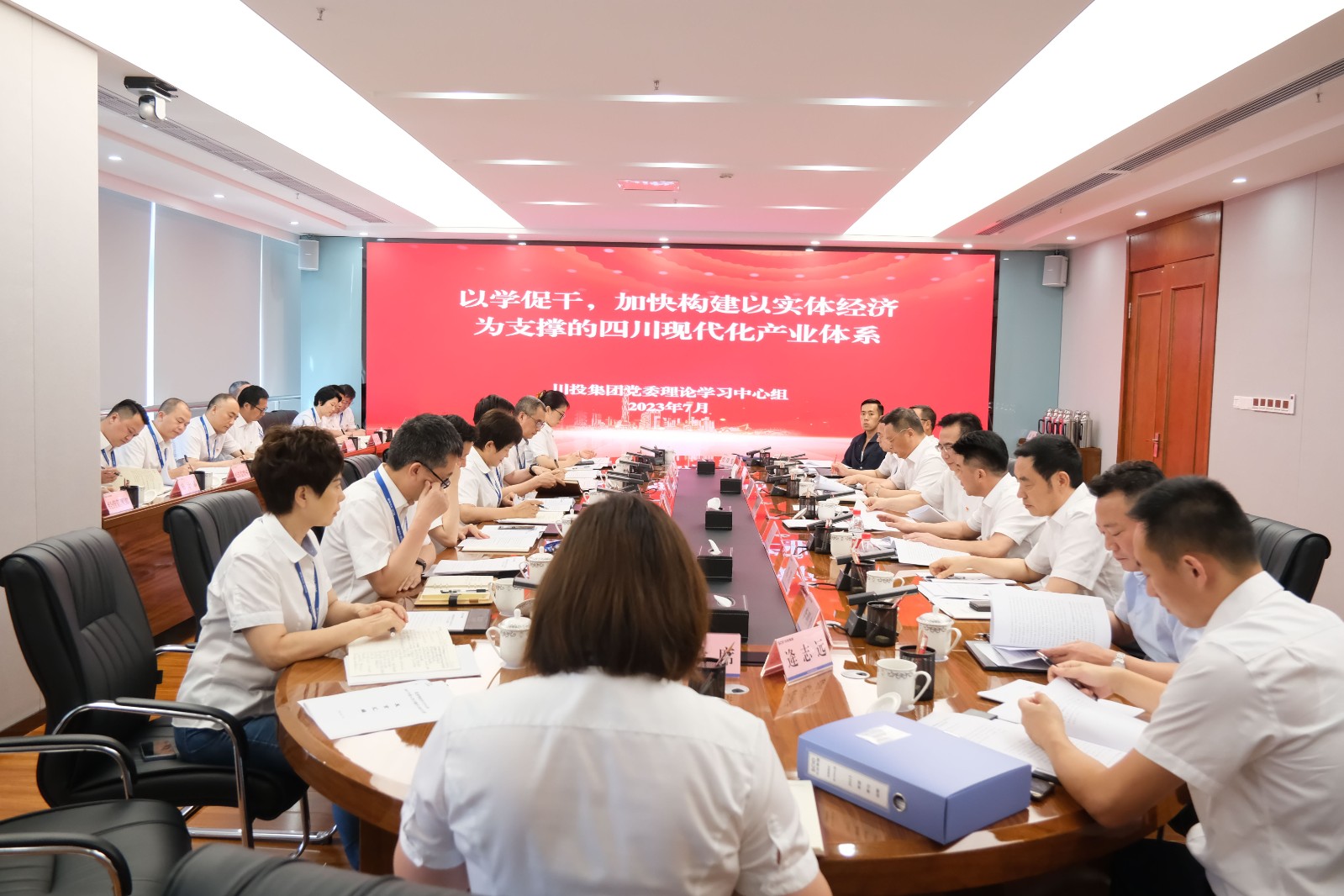 7月21日,川投集团党委召开理论学习中心组2023年第6次学习(扩大)会,围绕“以学促干,加快构建以实体经济为支撑的四川现代化产业体系”开展专题研讨。省国资委二级巡视员符定平,省国资委宣传工作处、企业领导人员管理处相关同志到会旁听督导。集团党委书记、董事长吴晓曦主持会议,集团党委理论学习中心组成员出席会议,集团总经理助理、各部门负责人列席会议。